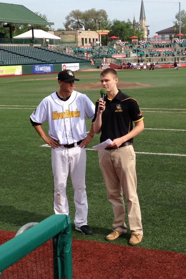 During the summer of 2014, I was the broadcaster for the South Bend Silver Hawks, the former minor league baseball affiliate of the MLB’s Arizona Diamondbacks at the Single-A level in the Midwest League. I was responsible for 53 play-by-play radio broadcasts at Four Winds Field in South Bend, Indiana. These broadcasts were streamed live on Milb.com and the Silver Hawks Radio Network. I also hosted an on-field pre-game show presented by Zolman Tire with two segments featured on the stadium’s jumbotron scoreboard prior to the home games. I hosted a one-on-one post-game interview show with the manager and players immediately following the game.